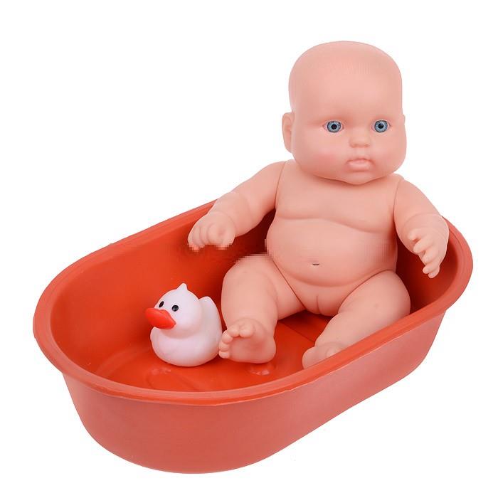 Кукла имеет аксессуары в виде ванночки и уточки, его можно купать.