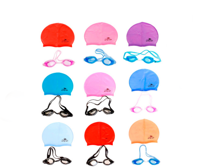 Набор для плавания из шапочки и очков подойдет детям для занятий в бассейне детского сада.