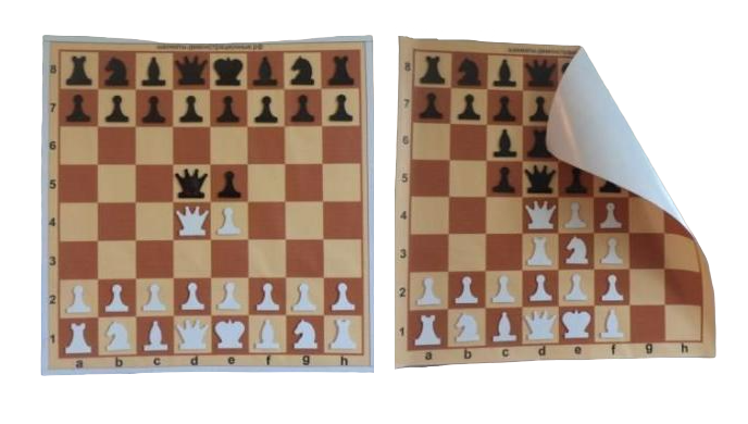 Доска сделана из прочной полимерной ткани. Двухцветное игровое поле имеет 4-х стороннюю нотацию. С обратной стороны поля расположены две магнитные полосы для крепления на металлическую поверхность (например, на магнитно-меловую или магнитно-маркерную доску).