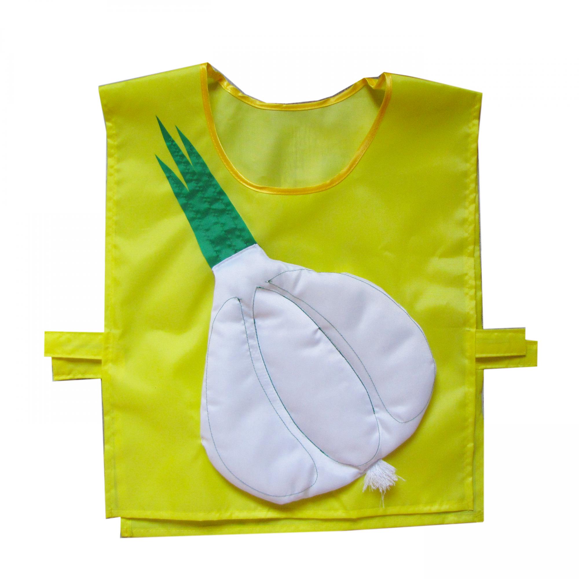 Жилет "Чеснок" входит в серию карнавальных нарядов, предназначенных для знакомства дошкольников с различными овощами и фруктами.